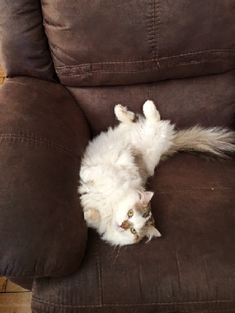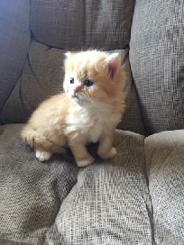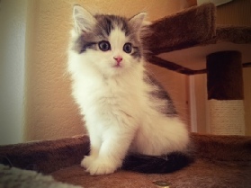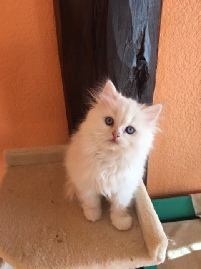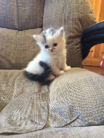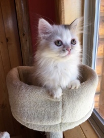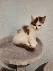 Clawed Lemieux (Claude) is our own stud and we are very proud of him. He is a chocolate mackerel tabby and white long hair Minuet (short). He is a Supreme-
