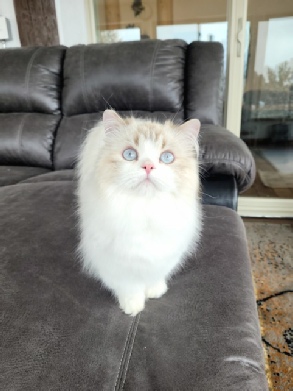 Mattie is our girl from across the northern border and I am so excited about her. I waited sooooo long to find the perfect addition to our cattery and I found her in Vancouver, Canada, at Ccatmistry Cattery. I was so happy that Anyi allowed me to take her into my program, since she doesn’t usually sell kittens for breeding. I will treat Mattie as one of my own children. We do not plan to breed her until the summer of 2025.